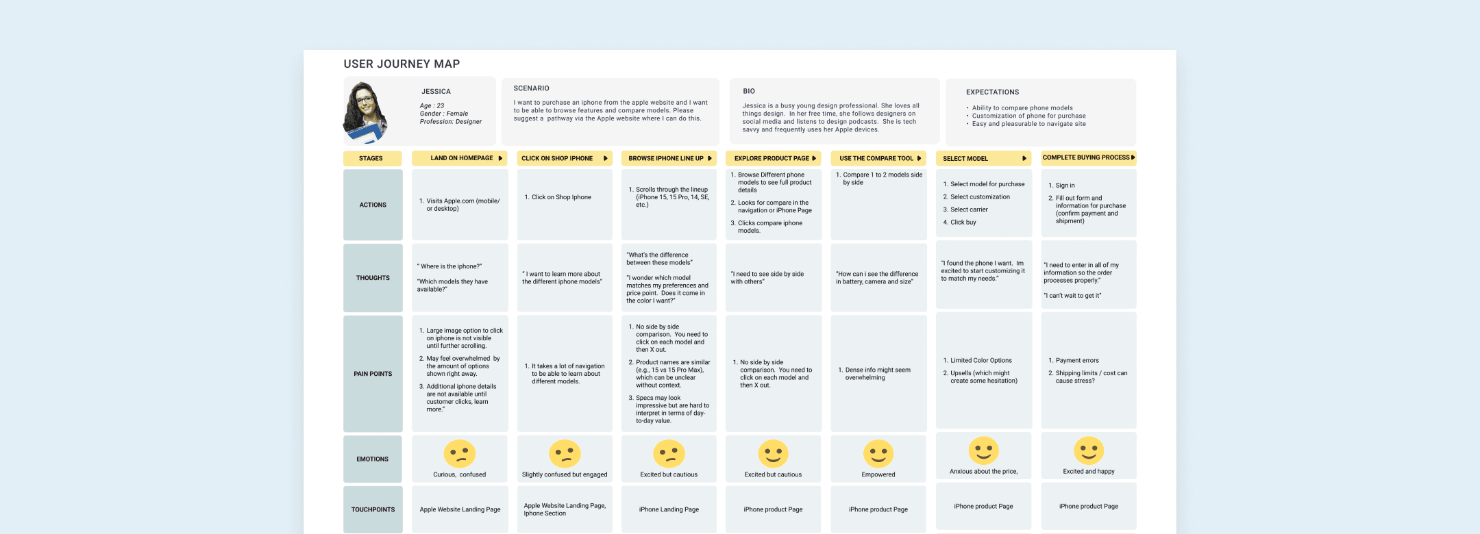 The goal of this research was to gain a deeper understanding of the current online customer experience on Apple’s website and identify key pain points within that journey. To do this, I reviewed user feedback from sources such as Reddit and the Apple Store.
