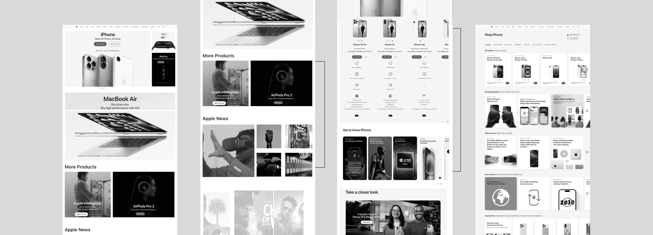 Research Goal: Understand how users navigate Apple’s homepage and iPhone purchasing flow, what information they need to make a decision, and which homepage layout best supports comparison and confidence before purchase.