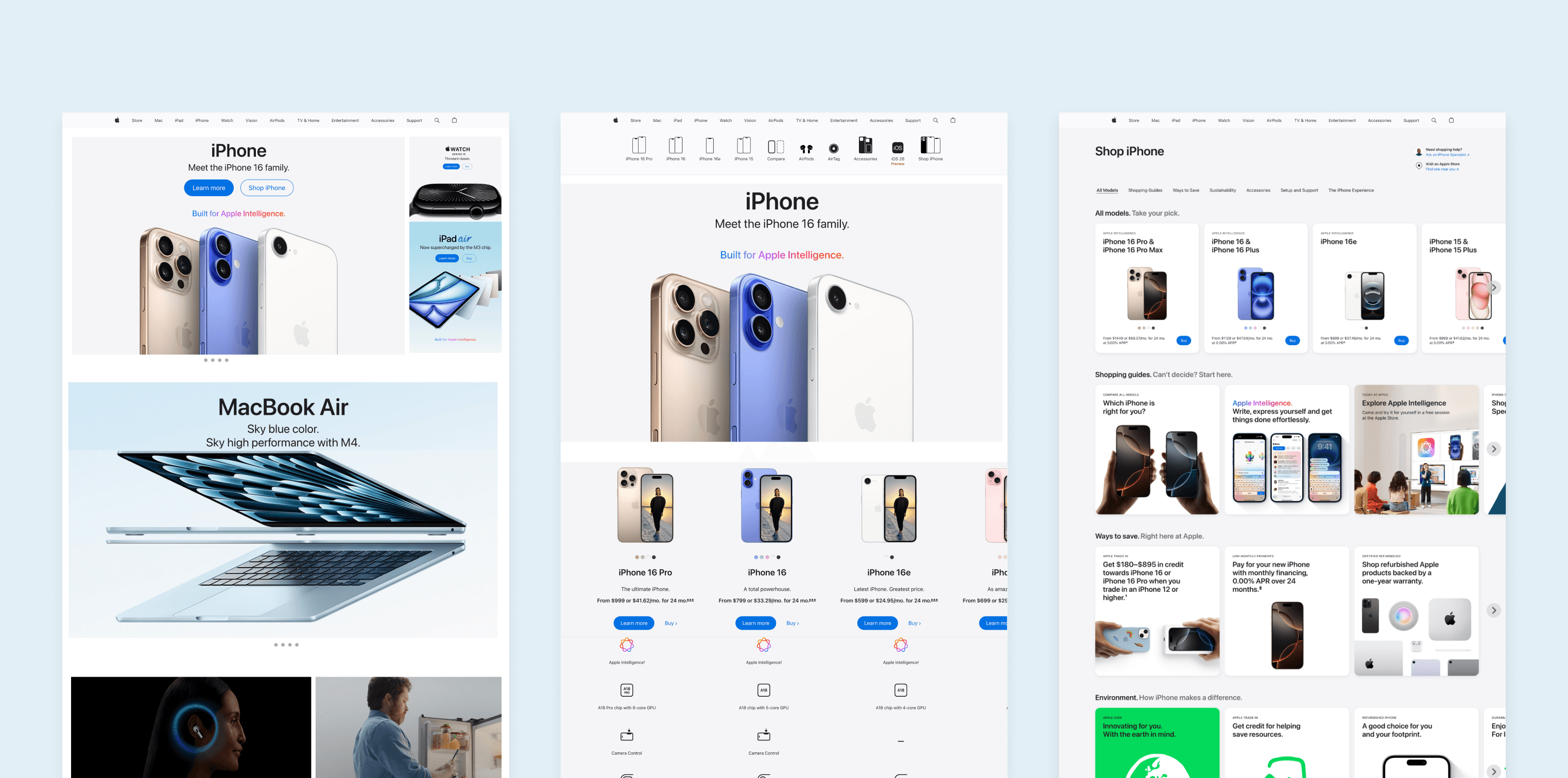 In recent years, the Apple Store has shifted toward a more immersive experience, featuring editorial stories, seasonal collections, and curated product highlights. While this evolution aligns with Apple’s luxury brand positioning, it can create challenges for users who want to quickly and easily find specific products.